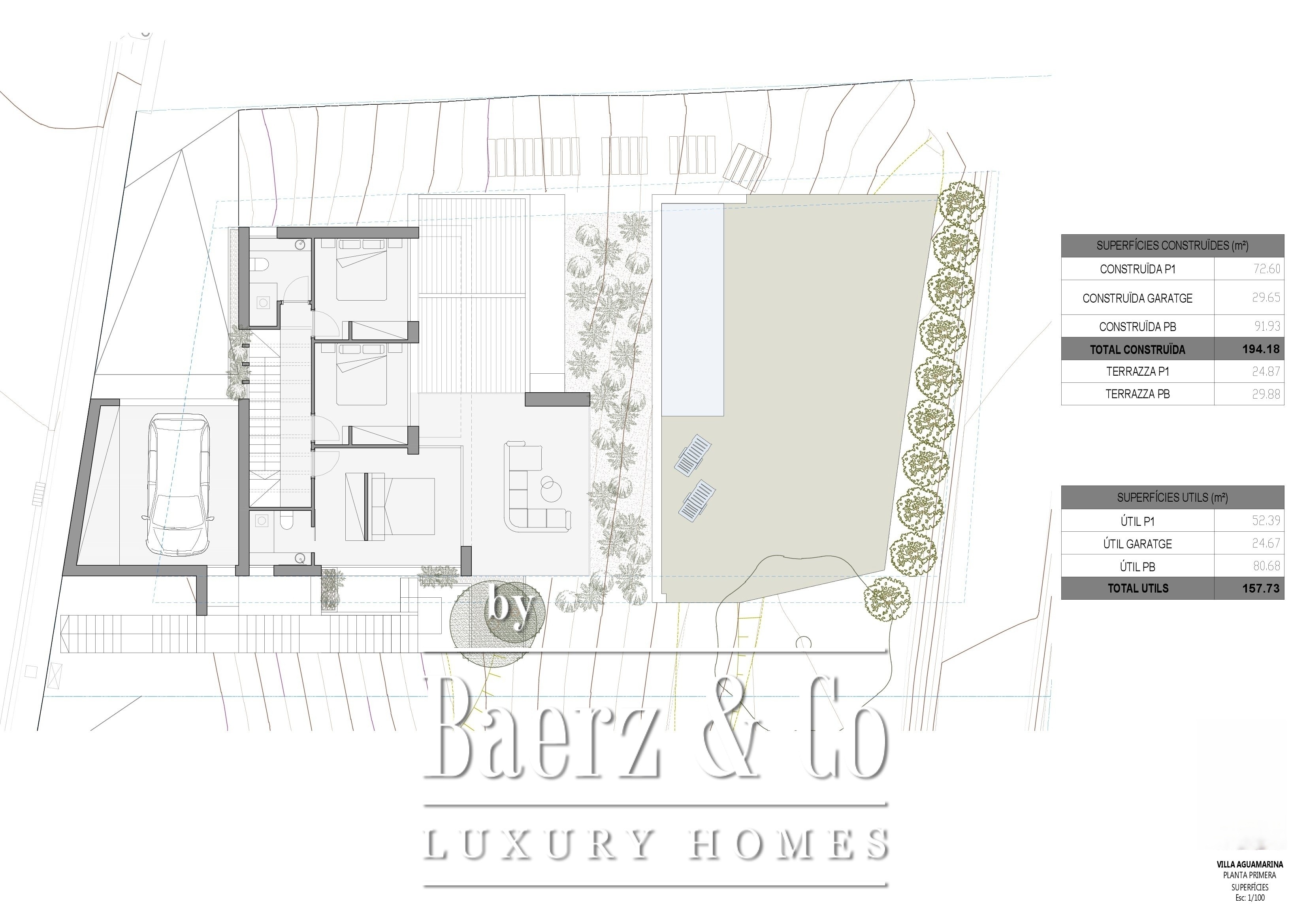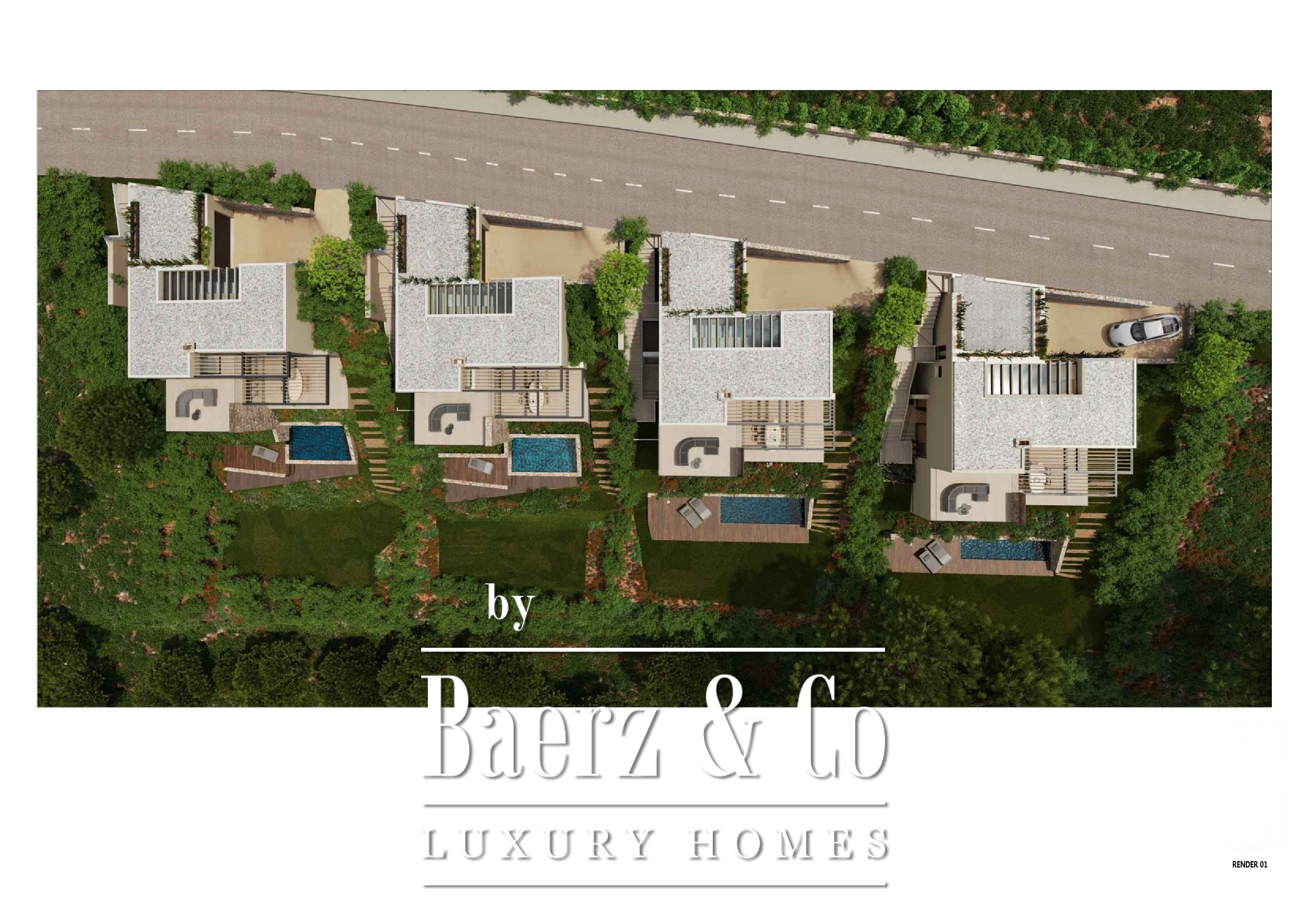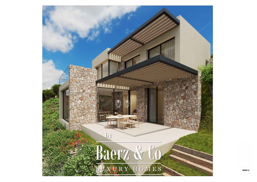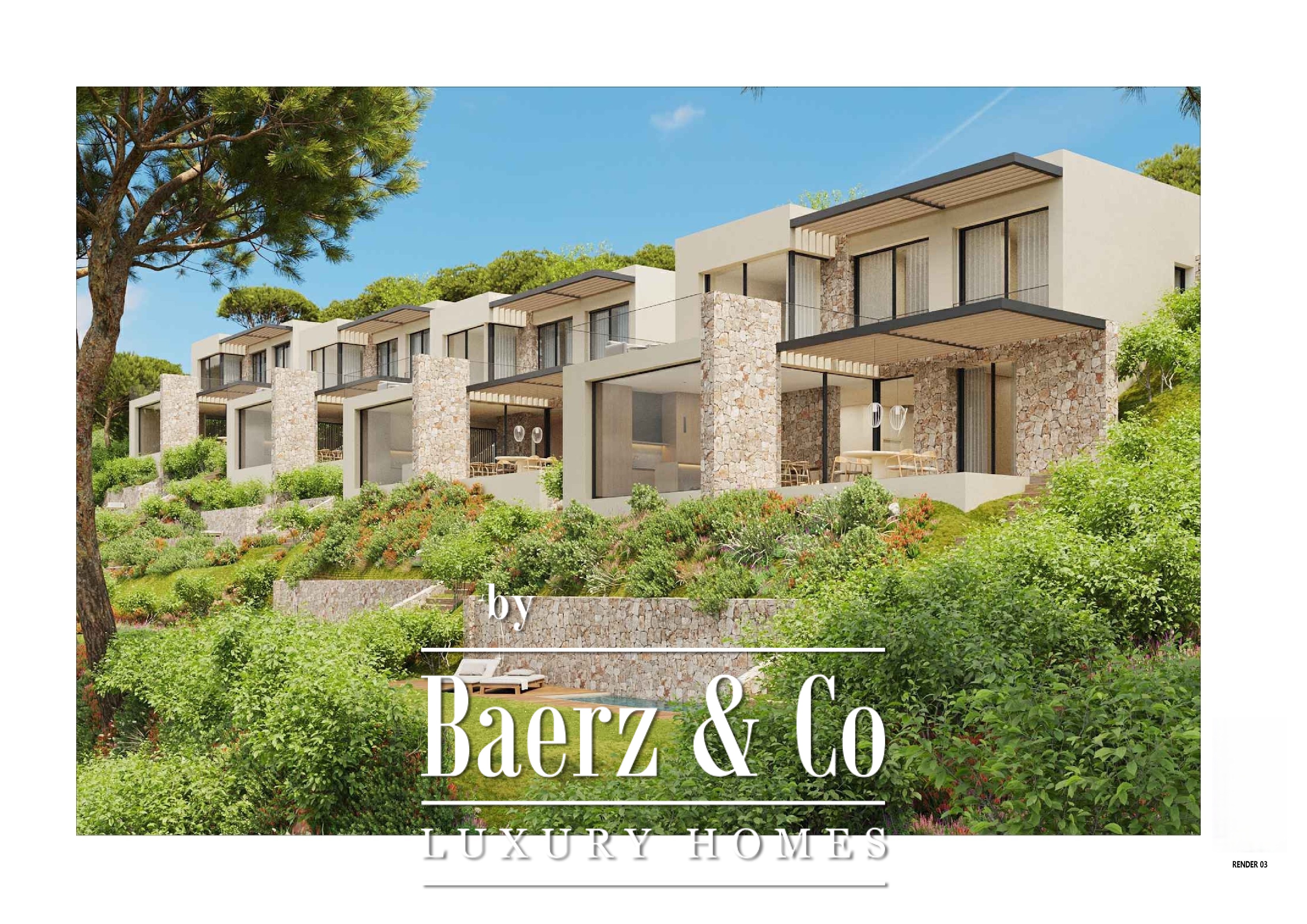 La villa ofrece 157 m² distribuidos en cuatro dormitorios y cuatro baños, dos de ellos en suite, con espacios diseñados para el confort discreto y la funcionalidad. La cocina de concepto abierto se integra en una amplia zona de estar, creando una transición fluida hacia amplias terrazas con vistas a las colinas y los jardines. En este entorno, el interior y el exterior se funden para dar lugar a ambientes ideales para el ocio y el encuentro bajo el cielo mediterráneo.