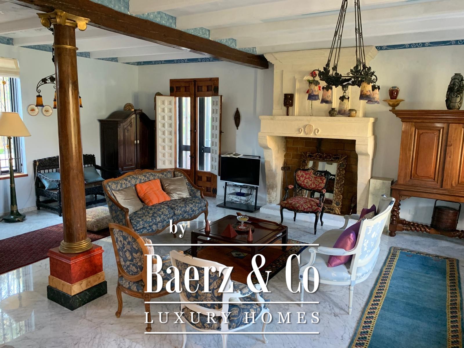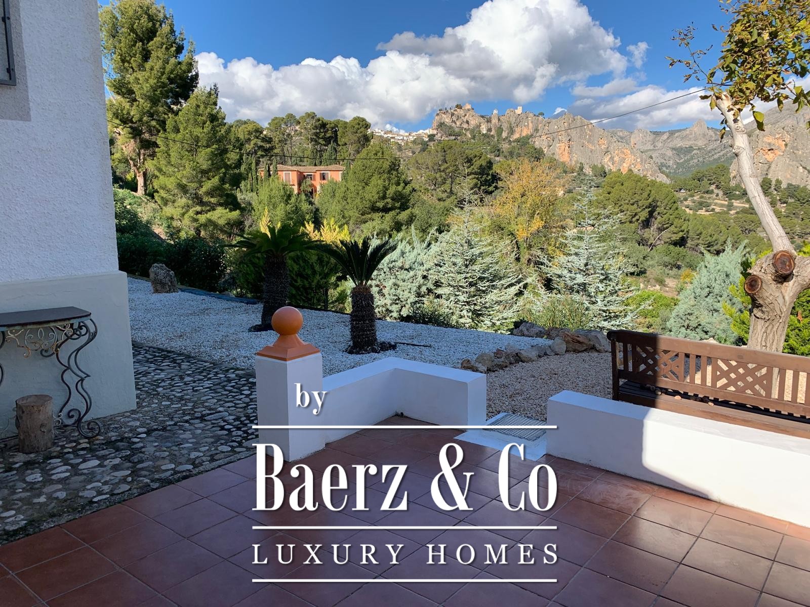 Esta villa rústica en Guadalest ofrece un refugio sereno enmarcado por la silueta imponente del Castillo de Guadalest. Ubicada discretamente en una generosa parcela de 5.750 m², la propiedad fusiona la arquitectura española clásica con un entorno natural envolvente. Al acceder, se percibe de inmediato una sensación de amplitud gracias a los techos altos y la abundante luz natural. La residencia principal se distribuye en dos niveles y suma aproximadamente 230 m², con seis dormitorios y cinco baños diseñados con privacidad y comodidad en mente.