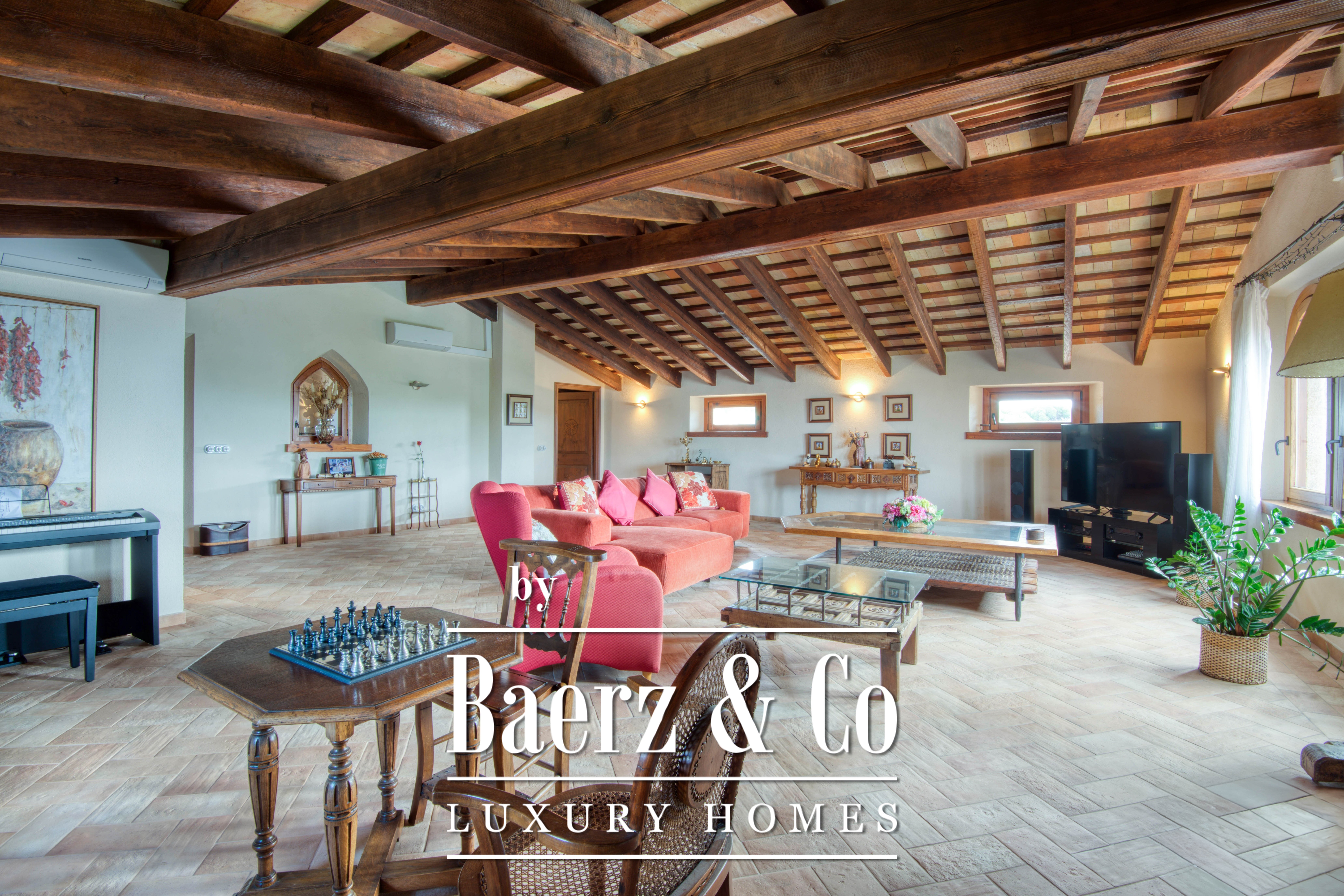 En el interior, seis dormitorios y cuatro baños garantizan lujo sereno para familia o invitados. La cocina independiente se conecta directamente con las zonas sociales, mientras que el amplio y luminoso salón se extiende a terrazas que enmarcan los amaneceres y atardeceres sobre la costa. En el exterior, el jardín privado y la piscina invitan a disfrutar plenamente del verano, complementados por una zona de barbacoa, chimenea y generosos espacios de descanso. El confort está asegurado gracias a calefacción, aire acondicionado, garaje cerrado y amplio aparcamiento dentro de la propiedad.