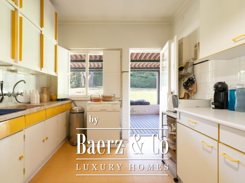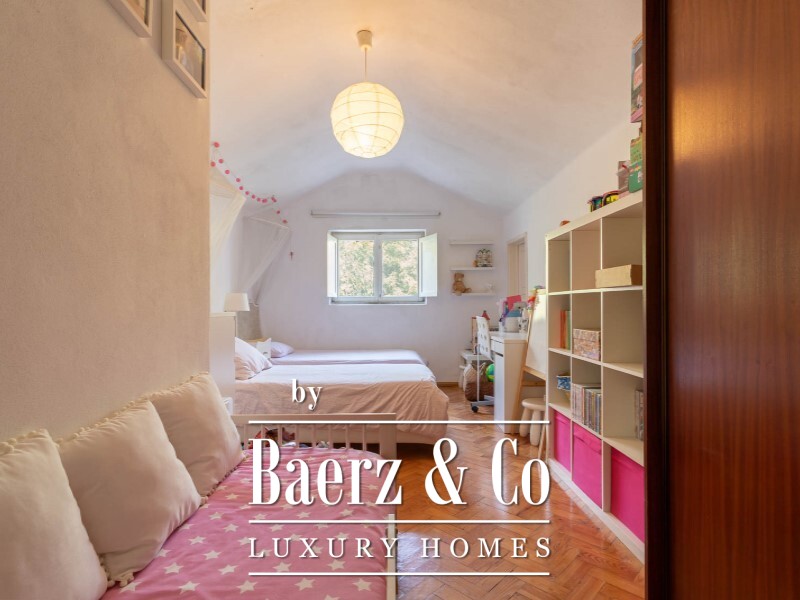 Actualmente configurada como tres apartamentos independientes, la propiedad cuenta con 8 dormitorios, diversos salones, chimeneas y una sucesión de porches y terrazas soleadas orientadas hacia el paisaje. Las principales zonas sociales se conectan de manera orgánica con el exterior, propiciando una transición fluida entre ambos ámbitos, realzada por una piscina y un jardín maduro que evocan la serenidad de los bosques de Sintra. El garaje de 200 m² permite un uso flexible, ya sea para coleccionistas o convivencia entre varias familias.
