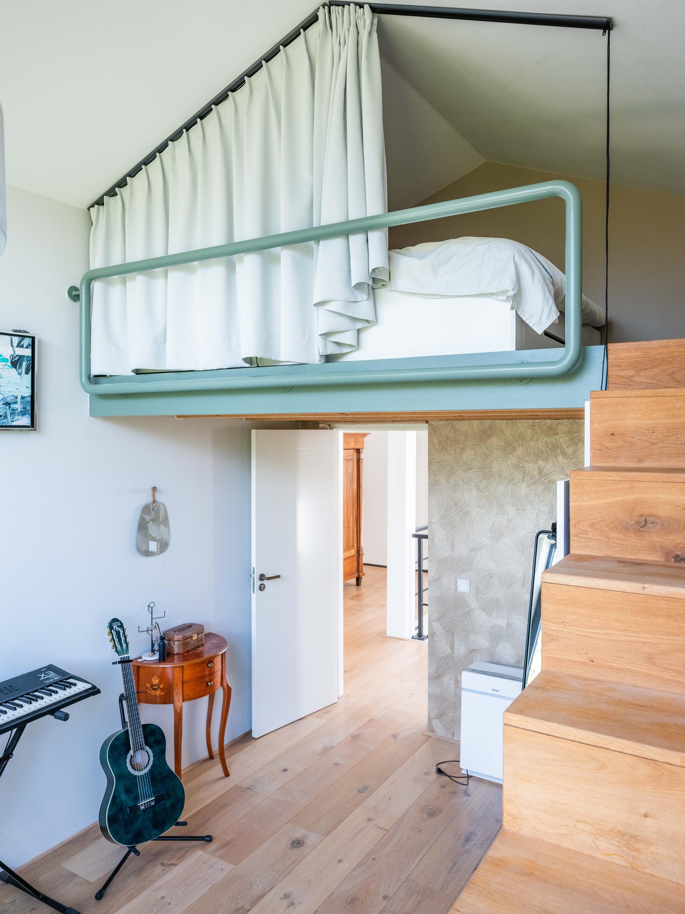 À l’étage, trois chambres, un bureau polyvalent avec vue panoramique, une salle de yoga et une mezzanine à la conception ludique répondent à la fois à la vie de famille et aux projets créatifs. Une seconde salle de bain complète, une buanderie séparée et un soin du détail constant offrent un confort réfléchi.