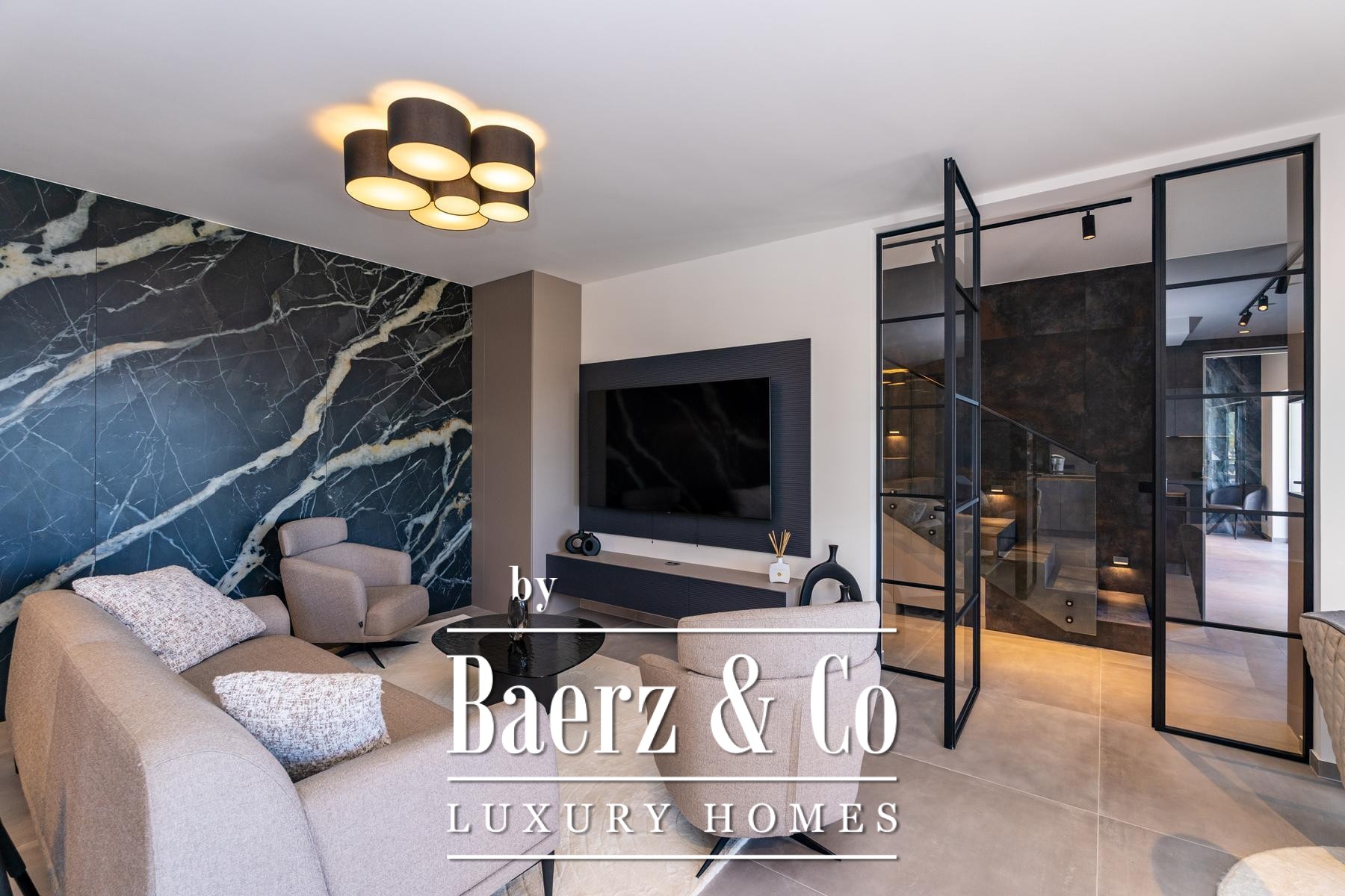 D'une surface de 300 m² répartis sur plusieurs niveaux, la résidence compose un rythme spatial propice aussi bien à l’intimité qu’aux moments de convivialité. Quatre chambres et quatre salles de bains, aménagées avec une élégance mesurée, offrent espace et confort, aussi bien aux résidents qu’à leurs invités. Les fonctionnalités domotiques et les solutions d’efficacité énergétique répondent parfaitement aux exigences du mode de vie contemporain, alliant facilité et durabilité.