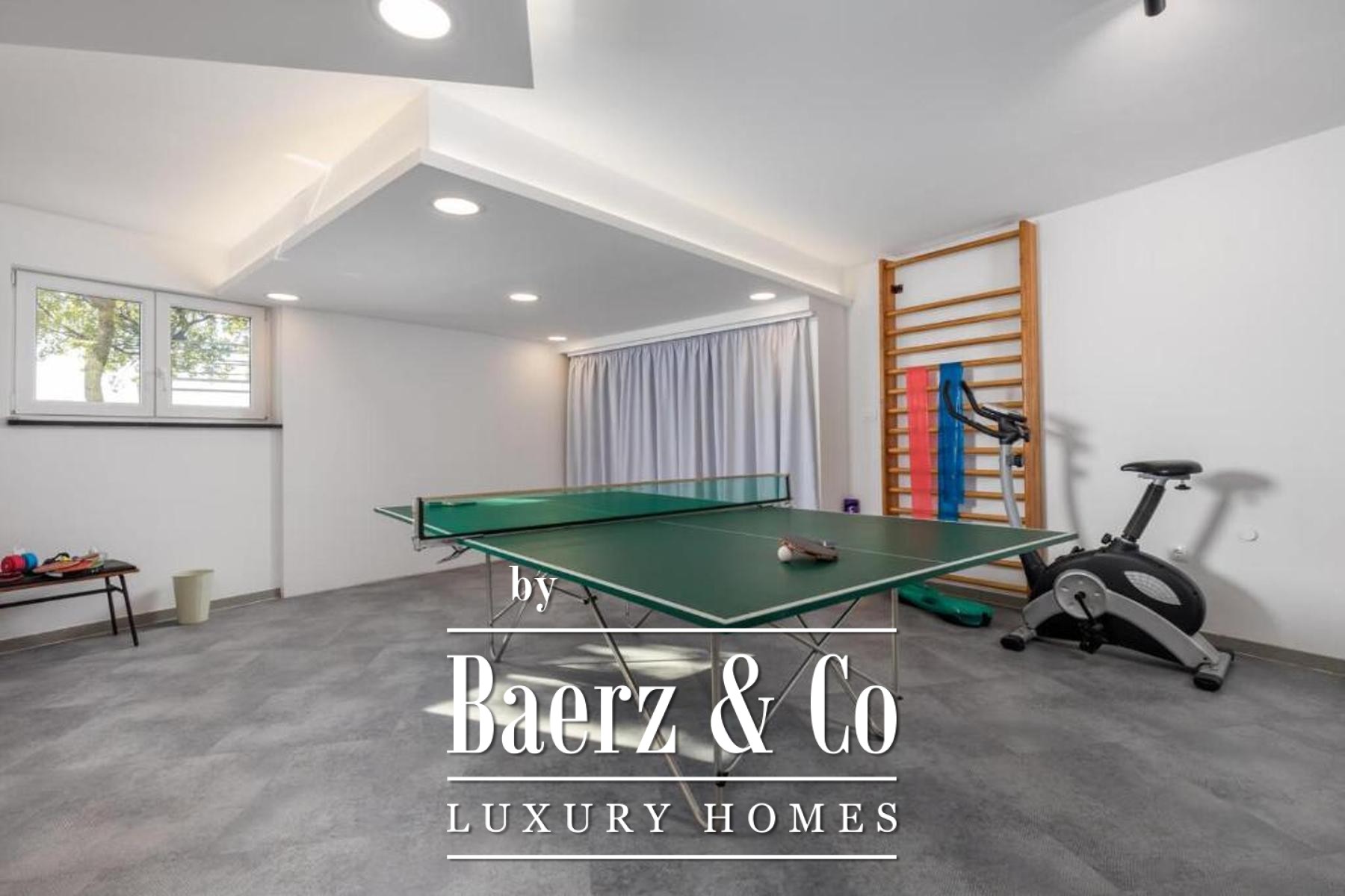 Édifiée sur un terrain de 1 585 m², la propriété accueille ses hôtes par un vaste garage privé, une buanderie, un espace loisirs ainsi qu'un appartement indépendant d'une chambre situé au sous-sol, garantissant intimité et flexibilité. La cuisine d'été s'ouvre sur une grande terrasse dotée d'une piscine à débordement et d'un solarium, offrant calme et vue imprenable sur la mer.