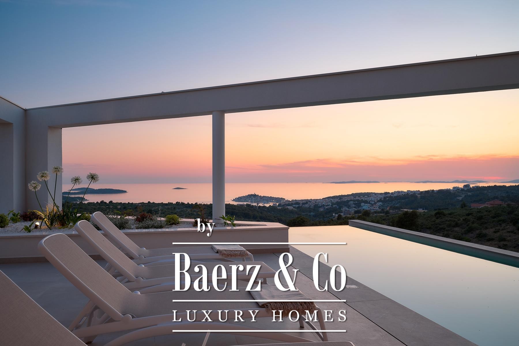 La villa Primošten avec vue panoramique sur la mer est une résidence contemporaine remarquable en Croatie, offrant 559 m² d’espace de vie raffiné sur un terrain total de 1 106 m². Conçue pour les amateurs d’excellence architecturale souhaitant profiter de panoramas marins dégagés à chaque étage, cette villa propose un mode de vie distingué. Au cœur de l’expérience, une piscine à débordement fusionne visuellement avec l’horizon, tandis que de vastes terrasses marient subtilement intimité et ouverture.