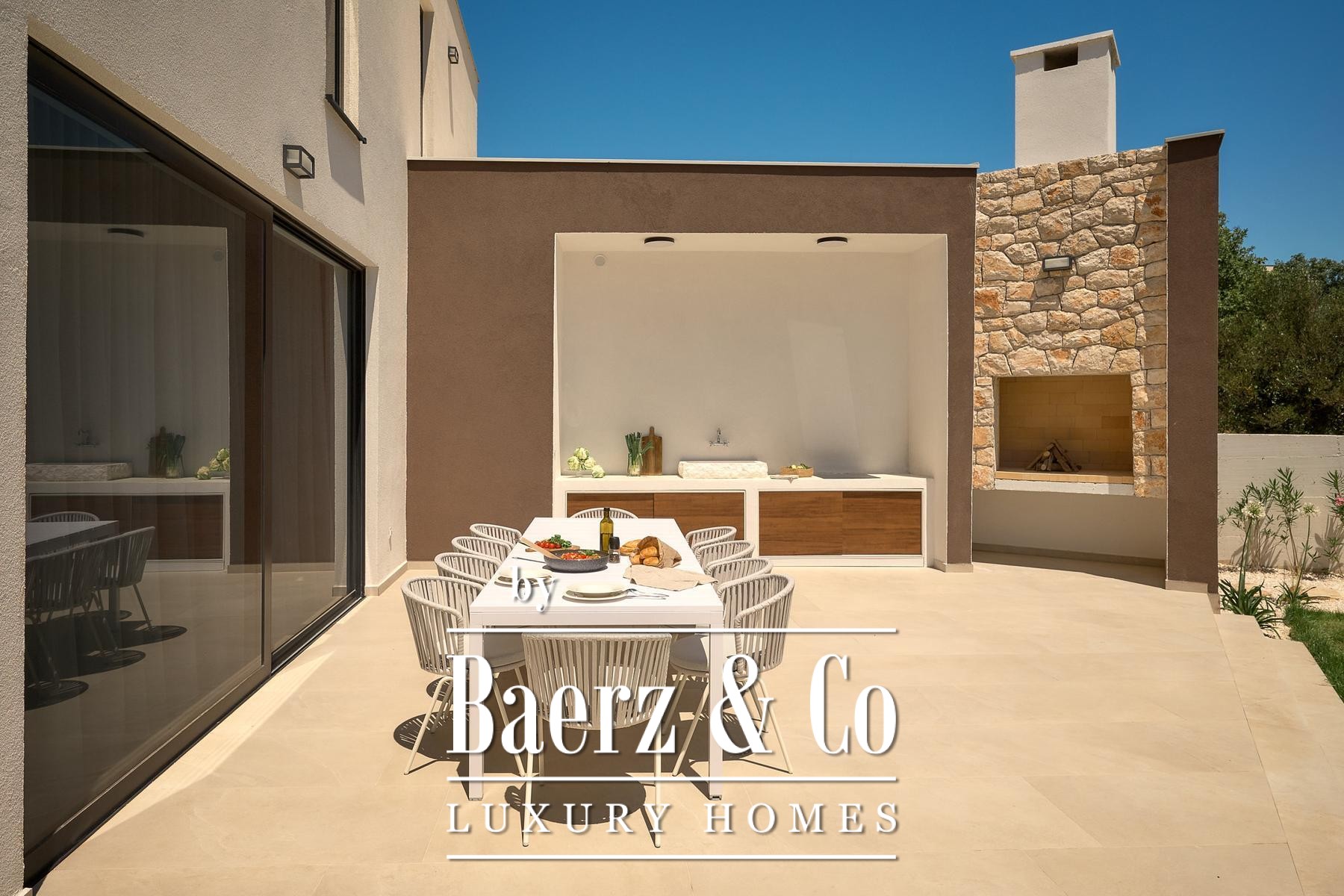 La sélection des matériaux, les finitions et les systèmes domotiques témoignent d’un engagement envers la fonctionnalité et l’esthétique soignée. Entourée de nature préservée, d’oliveraies et de vignobles, à quelques minutes à pied du centre de Primošten, cette villa incarne le luxe croate contemporain, une rare intimité et une sérénité durable.