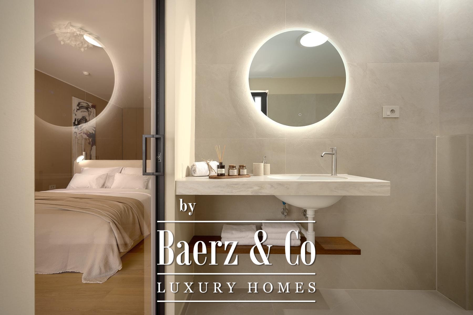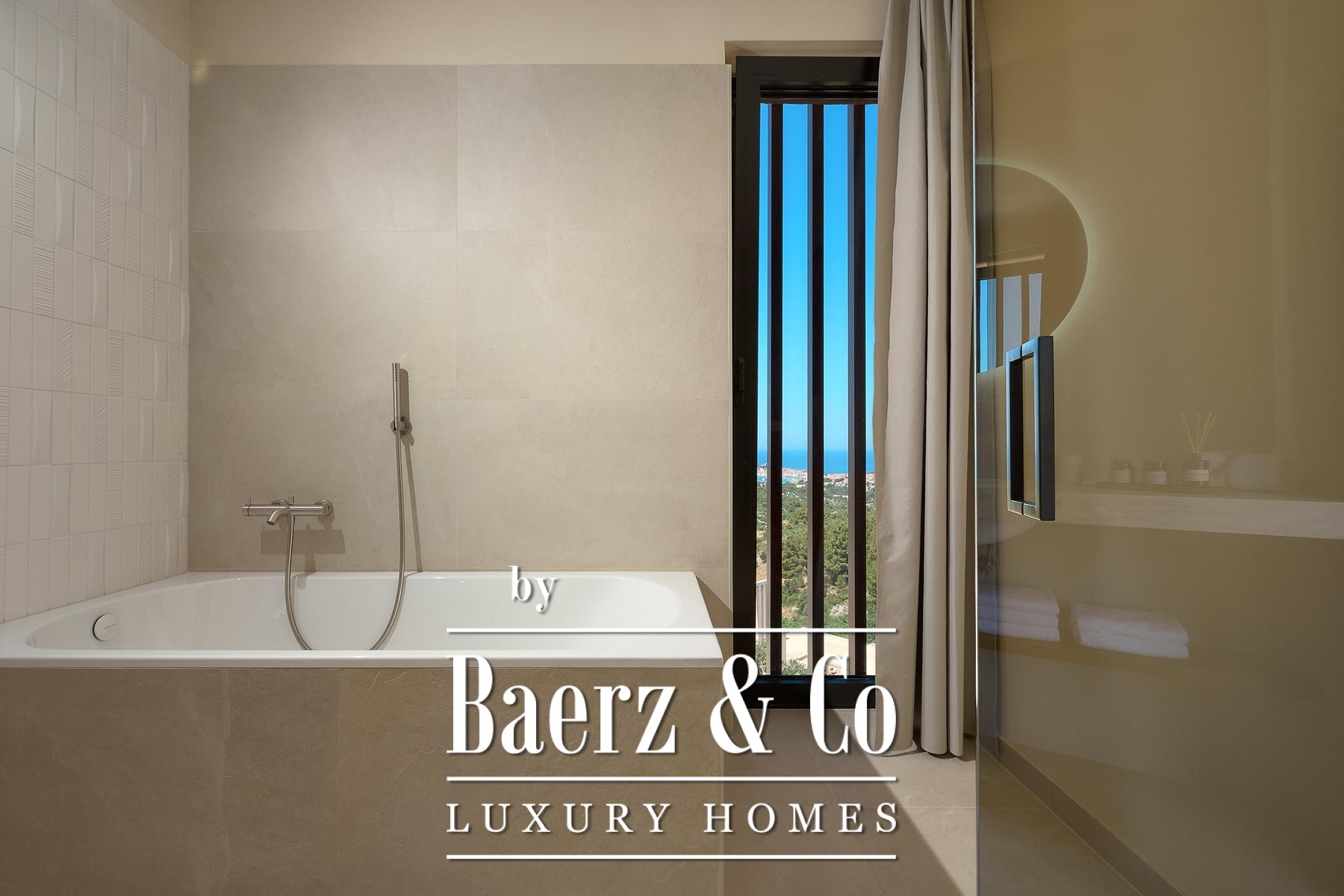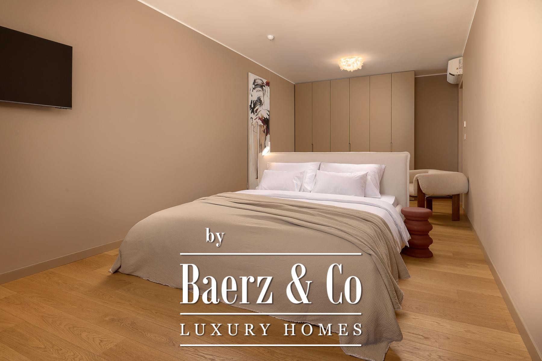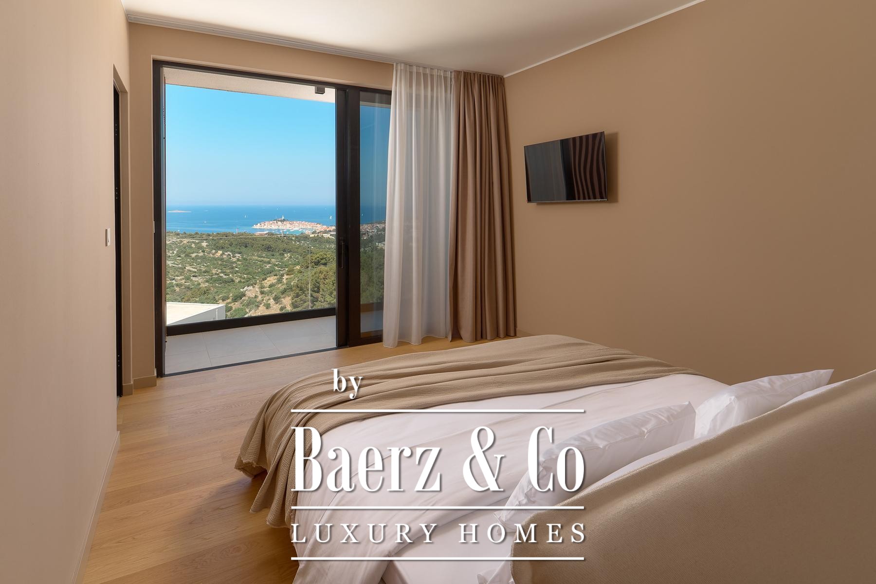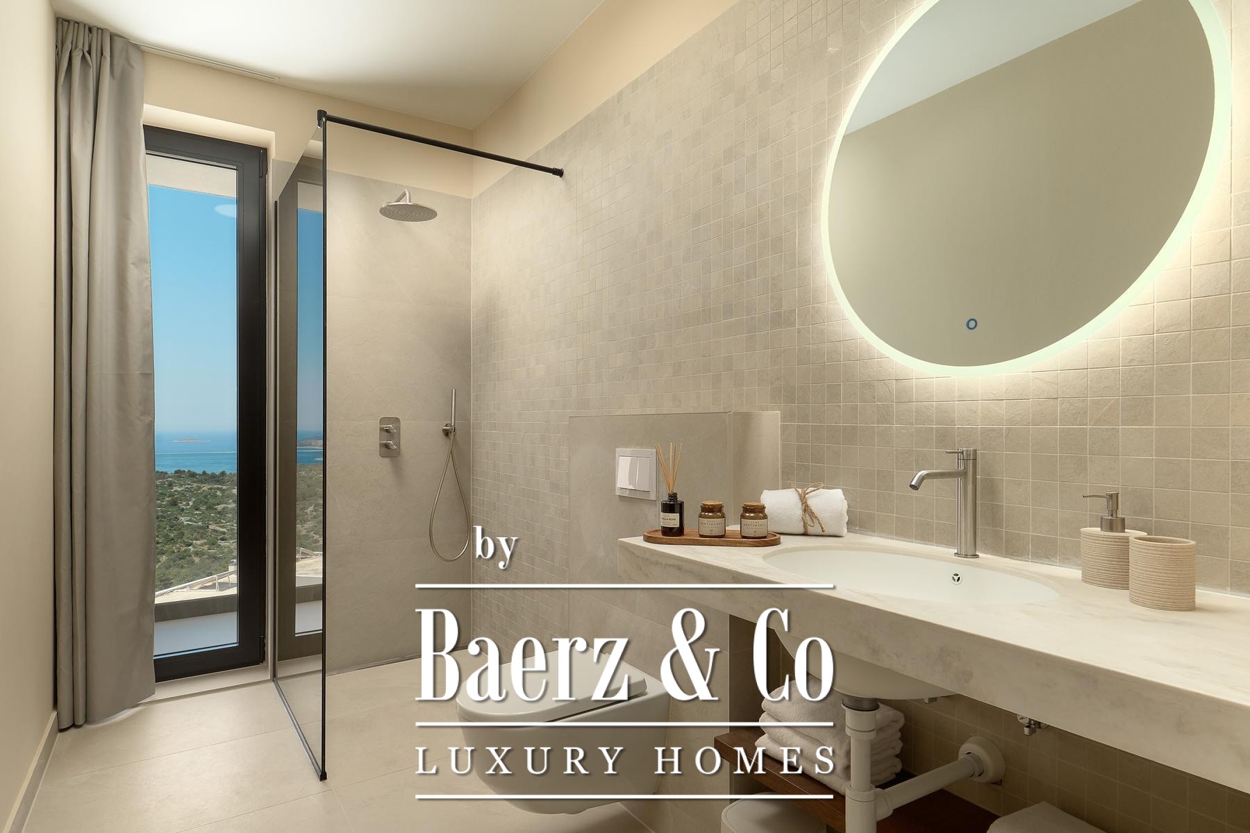 Sur trois niveaux, 379,58 m² sont dédiés à la vie quotidienne et à l’intimité. L’étage supérieur réunit quatre chambres, chacune dotée de sa salle de bain privative et d’un balcon surplombant l’Adriatique, garantissant exclusivité et sérénité. Au niveau inférieur, un studio indépendant avec terrasse pour invités ou personnel s’ajoute à un garage double, une zone de stockage et des pièces techniques.