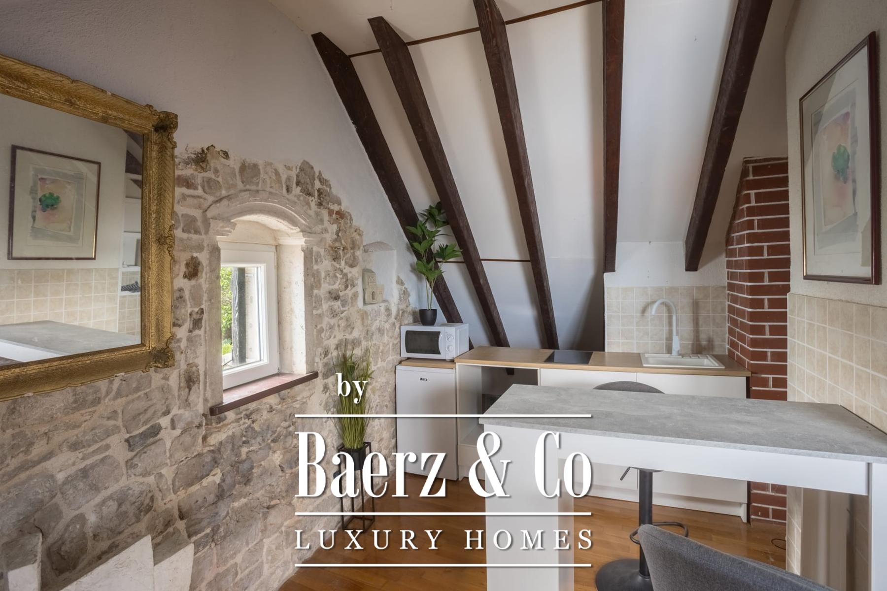 Ce palais historique du vieux Šibenik repose paisiblement dans l’une des plus anciennes rues de la ville, à quelques pas de la mer et de la cathédrale Saint-Jacques. La propriété s’étend sur 202 m² répartis sur trois niveaux et un grenier aménagé, soigneusement rénovée pour préserver les origines du XIIᵉ siècle tout en offrant un art de vivre moderne et confortable. Au rez-de-chaussée, une cave à vin authentique révèle le caractère préservé de la demeure. Le premier étage accueille cuisine, salle à manger, salon, toilettes invités et cellier, tandis que le deuxième étage dispose de trois chambres et d’une salle de bains. Le grenier indépendant, équipé de sa propre cuisine, salon, chambre et salle de bains, s’adapte facilement à l’accueil d’invités ou à la location touristique très recherchée.