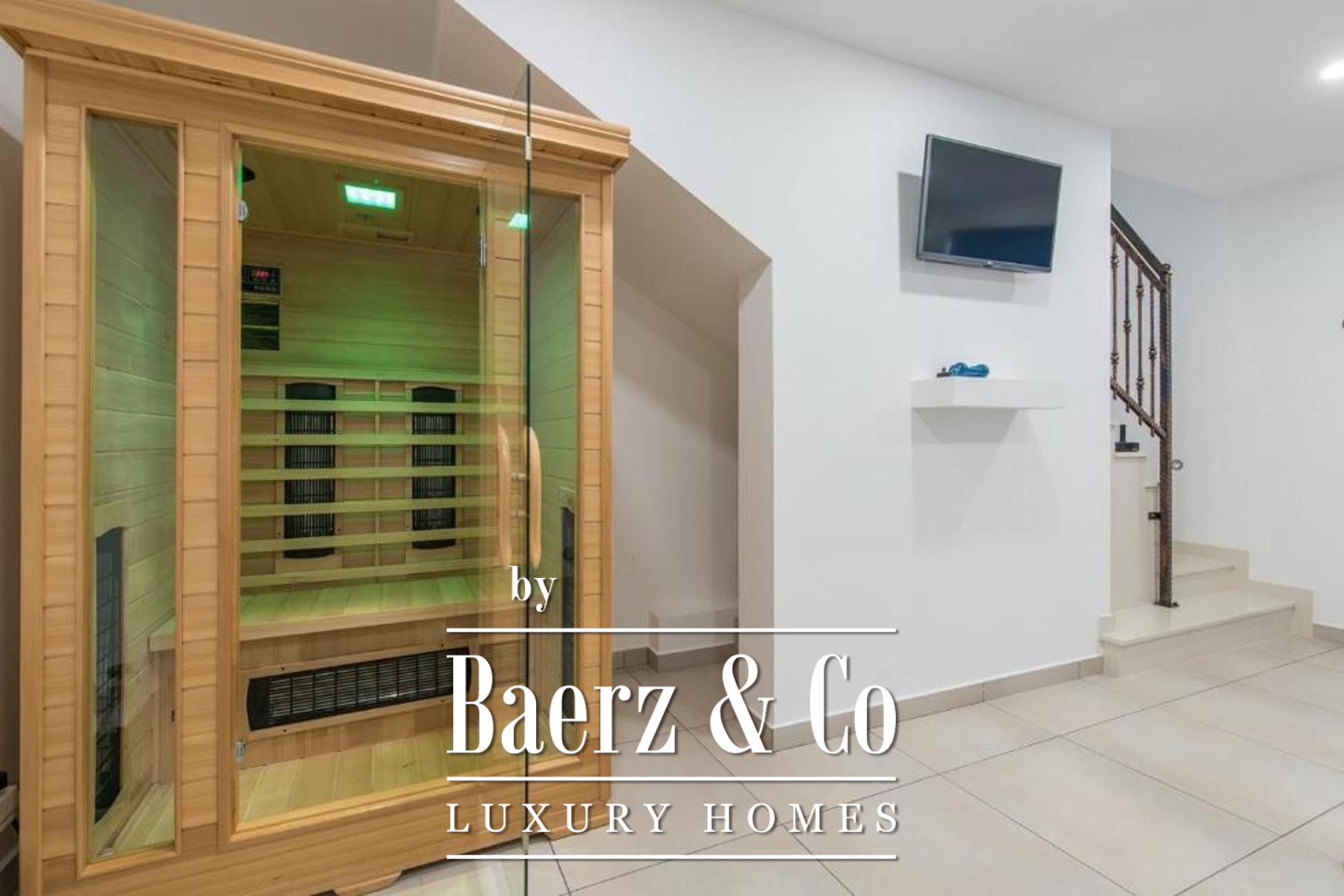 Le rez-de-chaussée offre des transitions fluides entre l’intérieur spacieux et l’extérieur, avec une piscine de 30 m², un jacuzzi, deux terrasses couvertes et un salon ouvert sur le jardin. La cuisine et la salle à manger disposent de leur propre terrasse, invitant à des moments conviviaux au soleil comme à l’ombre. Le sous-sol accueille une salle de sport et un sauna, véritables havres de détente et de bien-être. Au premier étage, trois chambres et trois salles de bains profitent d’un accès à la terrasse, offrant des vues apaisantes sur la nature environnante et la mer au loin. Les combles abritent deux chambres et deux salles de bains supplémentaires, préservant l’intimité des invités ou des membres de la famille. Une mezzanine propose une suite avec salle de bains pour un confort accru.
