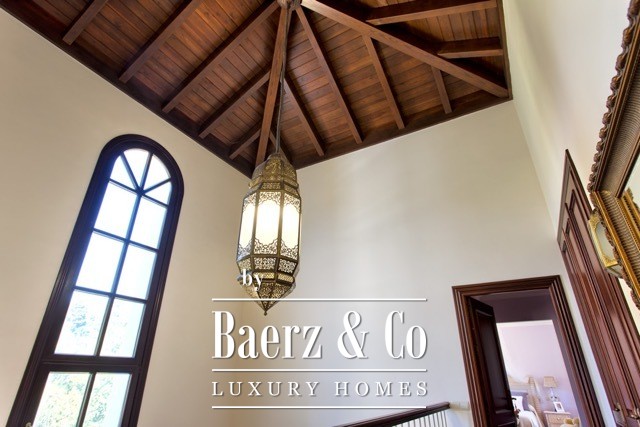 De woonbeleving wordt versterkt door een zoutwaterzwembad, een garage voor vier auto's, een gastenappartement en een scala aan voorzieningen zoals vloerverwarming, airconditioning en zonnepanelen. Binnen wisselen de materialen van marmer naar hout, terwijl de ruimtes overlopen van een bioscoop- en speelkamer naar rustige studieruimtes en een kantoor. Overdekte, private en open terrassen (totaal 135 m²) bieden een prettige balans tussen afzondering en besloten ontvangst.