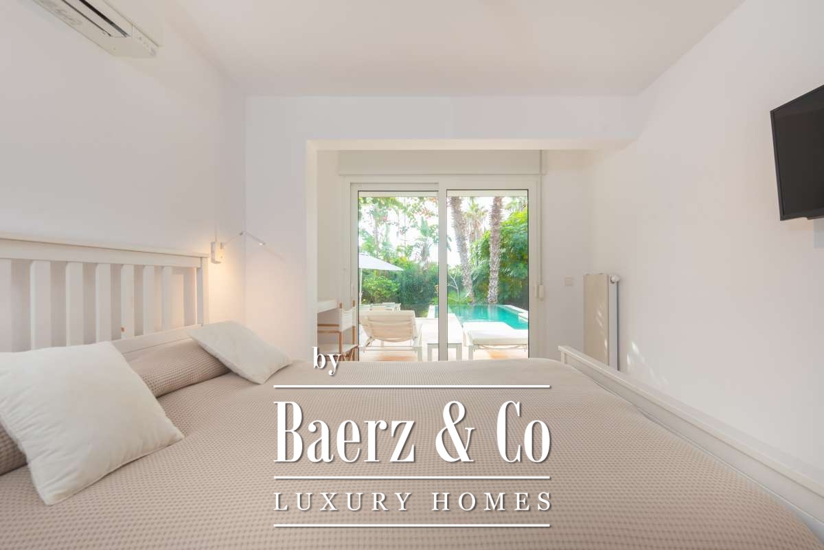 De omgevingVilla Nyandu is gelegen in een van de meest gewilde residentiële gebieden van Ibiza: het exclusieve Can Pep Simó, op steenworp afstand van Jesús en Ibiza-stad. Deze rustige en elegante wijk staat bekend om haar privacy en panoramische vergezichten over Dalt Vila, de haven en de Middellandse Zee. Hier woont u in een verfijnde woonomgeving waar rust en comfort samenkomen, terwijl alle voorzieningen, stranden en het bruisende centrum van Ibiza binnen enkele minuten bereikbaar zijn. Een ideale locatie voor wie het beste van beide werelden zoekt: sereniteit en levendigheid, perfect in balans.De villaDeze karaktervolle villa combineert tijdloze architectuur met een warme, uitnodigende sfeer en biedt een woonoppervlakte die is ontworpen met oog voor ruimte, licht en comfort.Binnen beschikt de woning over meerdere royale slaapkamers, ontworpen met oog voor privacy en rust. De leefruimtes zijn licht en ruim opgezet, met grote raampartijen die zorgen voor een natuurlijke overgang tussen binnen en buiten. De keuken vormt het hart van de woning en sluit naadloos aan op de eet- en woonkamer, ideaal voor zowel dagelijks gebruik als het ontvangen van gasten.Daarnaast biedt de villa diverse praktische ruimtes en flexibele indelingsmogelijkheden, waardoor het huis zich eenvoudig laat aanpassen aan verschillende woonwensen. Een harmonieuze combinatie van comfort, functionaliteit en stijl.De buitenruimtesDe buitenruimtes van Villa Can Pep Simó zijn volledig ingericht om het mediterrane buitenleven optimaal te beleven. Verschillende terrassen en loungegedeeltes bieden ruimte voor ontspanning op elk moment van de dag. Het zwembad vormt een centraal element en wordt omringd door zonneterrassen met prachtig uitzicht over de zee en het omliggende landschap.Deze villa weerspiegelt alles wat wonen op Ibiza zo aantrekkelijk maakt: rust, ruimte, uitzicht en een strategische ligging. Een woning die niet alleen gezien moet worden, maar vooral ervaren. Een bezichtiging laat direct voelen waarom dit object tot de meest geliefde woonlocaties van het eiland behoort.