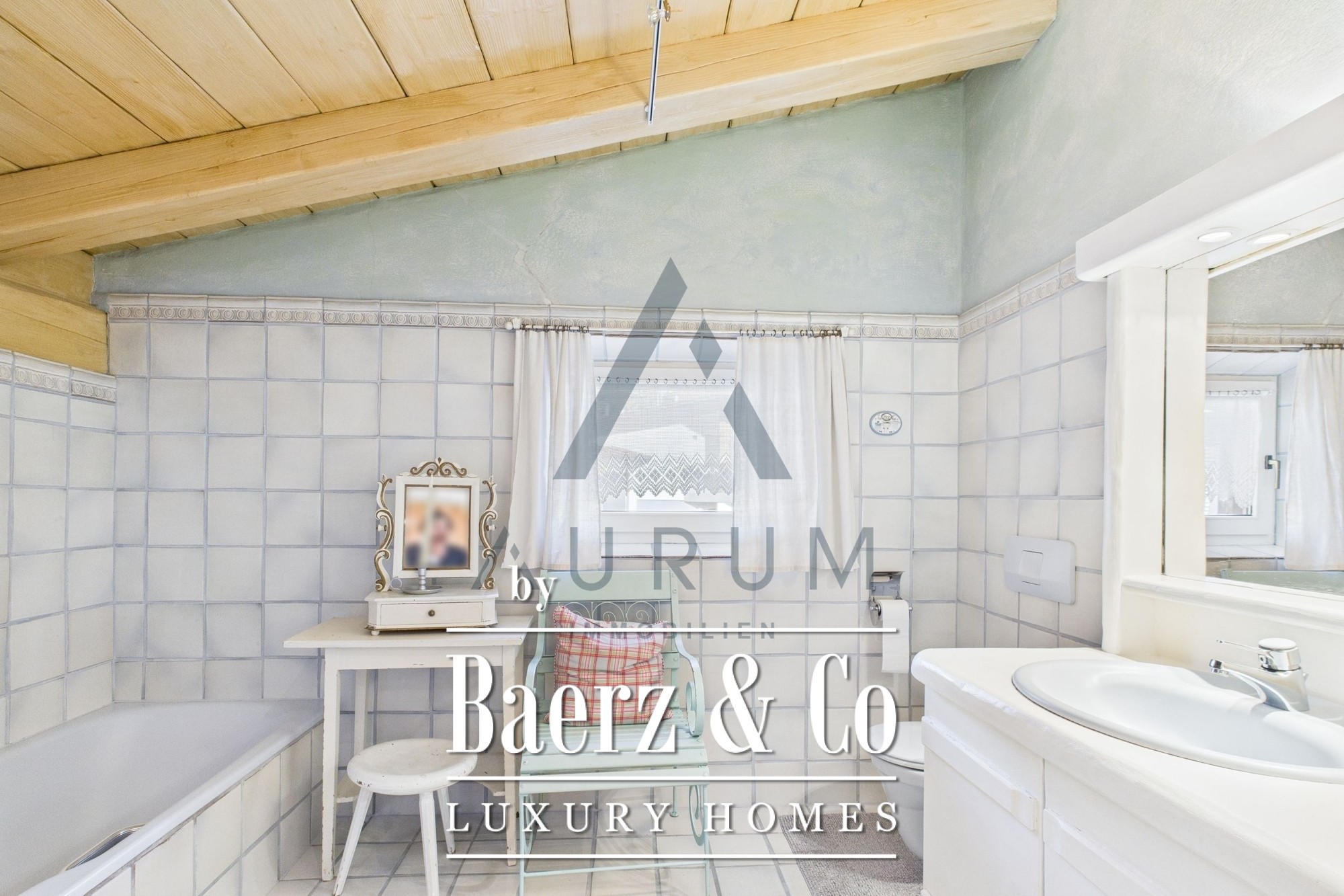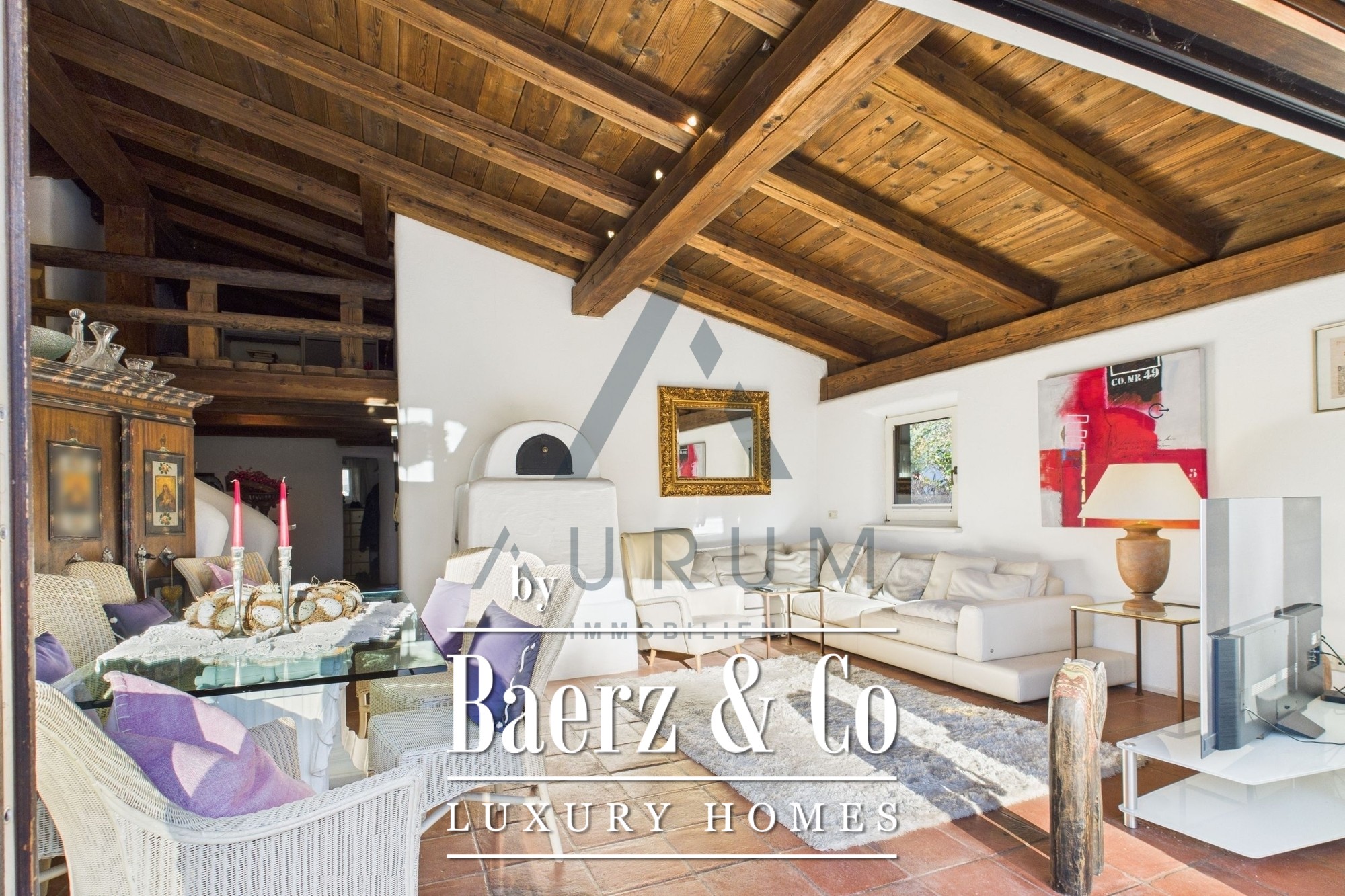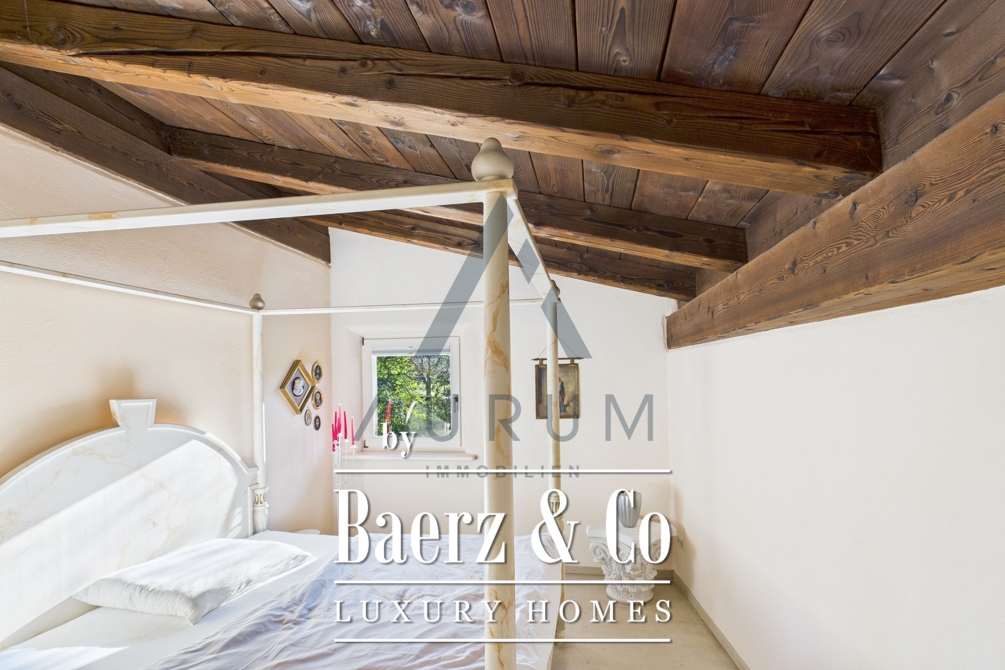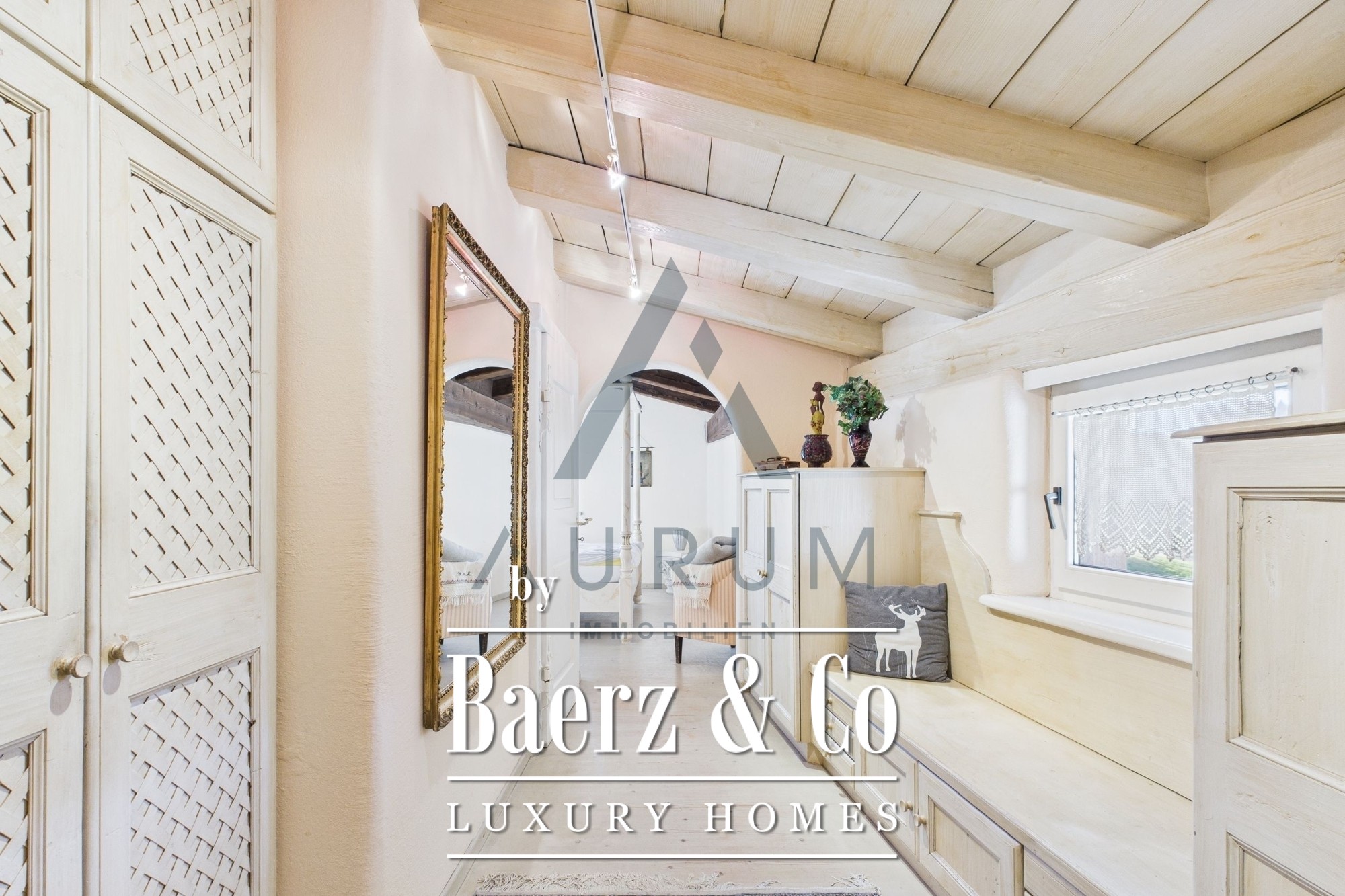 Сердце дома раскрывается на верхнем этаже, где открытые балки на крыше, керамическая печь и итальянская плитка придают шарм гостиной площадью 50 м². Естественный свет проникает через большие раздвижные двери на террасу с юго-западной ориентацией, которая плавно переходит в тщательно ухоженный сад. Традиционная кухня-столовая с панелями, обеденной зоной, дополнительной печью и кладовой создает атмосферу для дружеских трапез. На этом уровне также расположены спальня, гардеробная и ванная комната. На нижнем этаже две дополнительные спальни имеют выход в сад, рядом вторая ванная с ванной.
