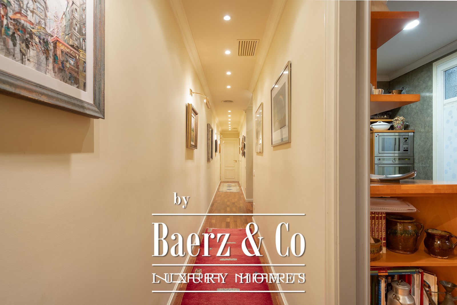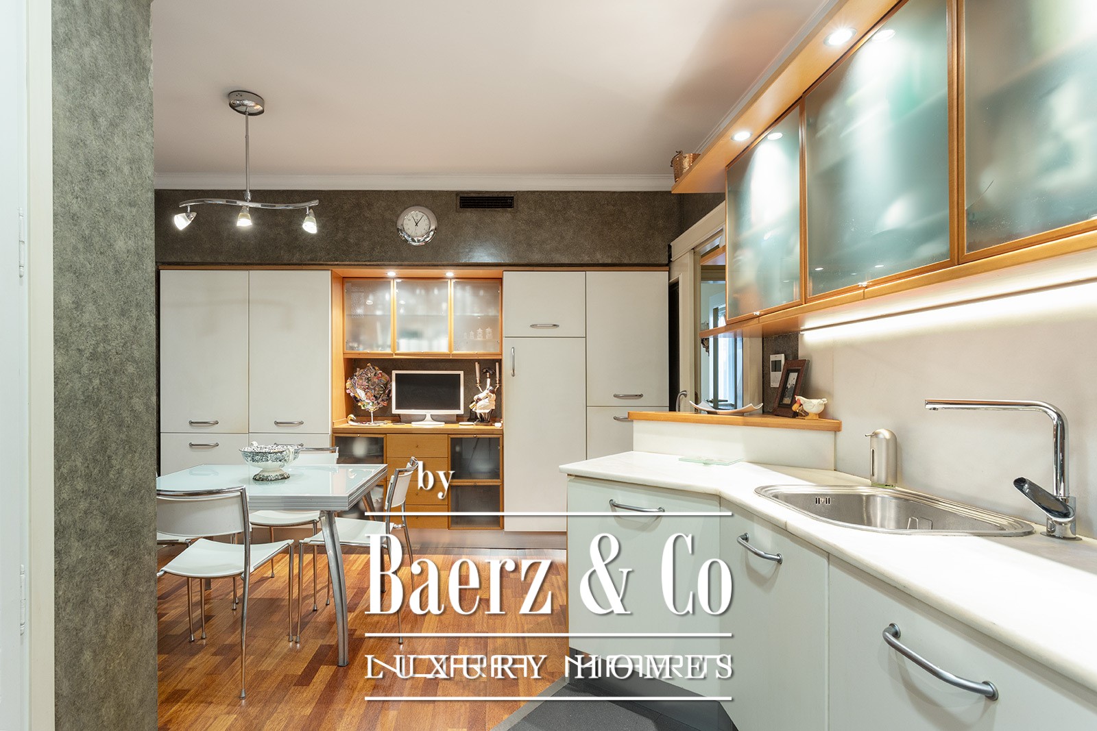 Гостиная и столовая просторны и наполнены естественным светом, с прямым выходом на два балкона, ориентированных на северо-восток, откуда открывается спокойный вид на ежедневный ритм города. Новая кухня с интегрированной техникой готова к любым кулинарным задачам и воплощает современную эстетику.