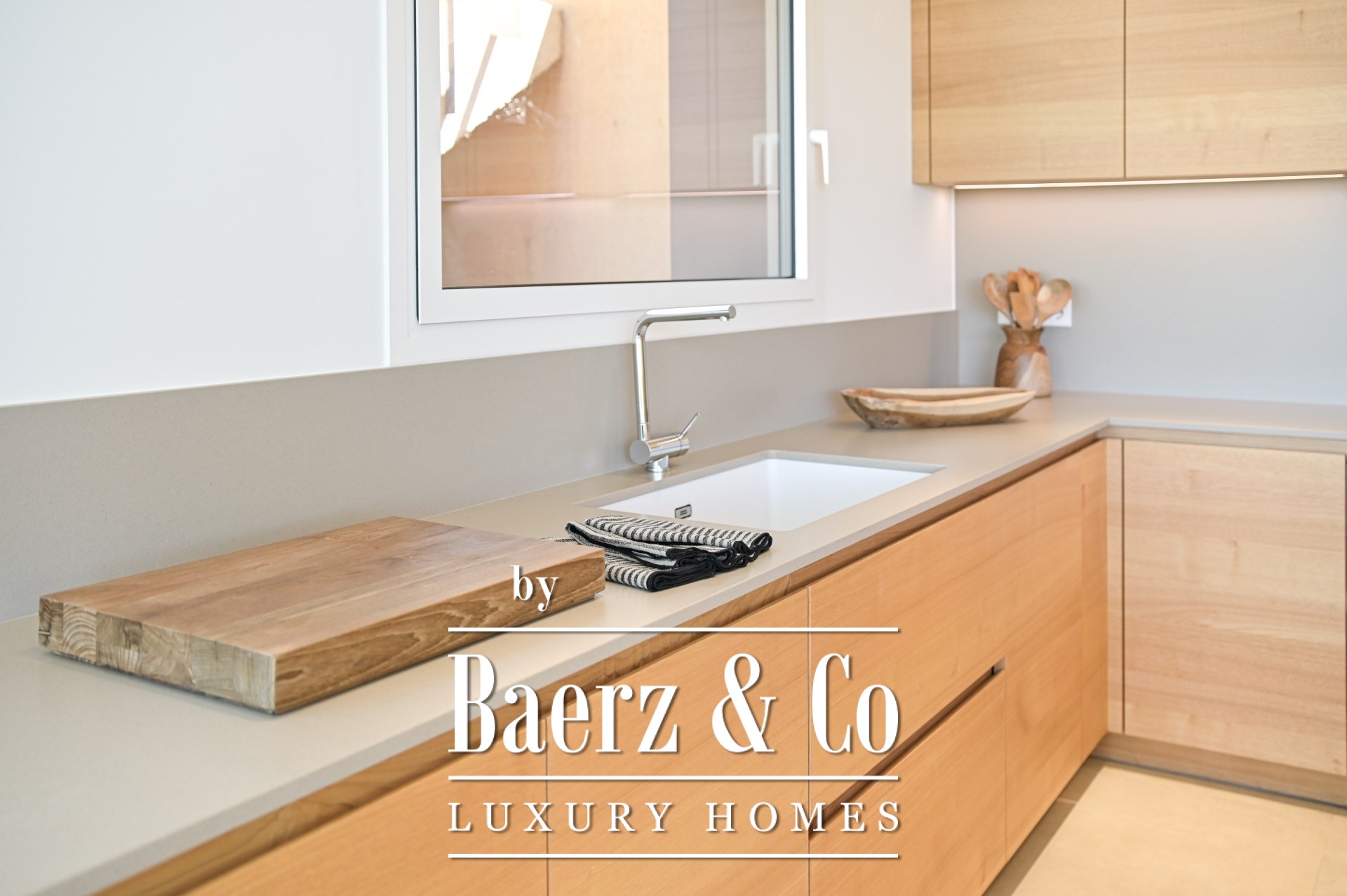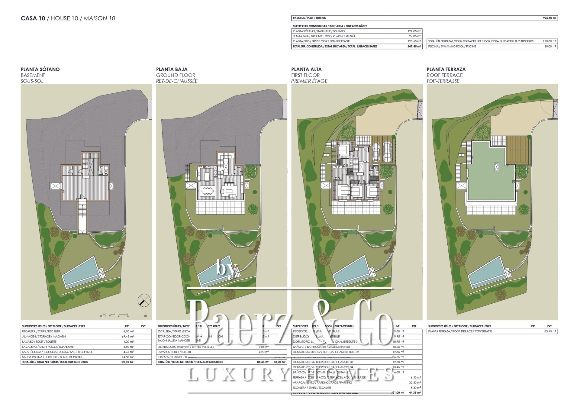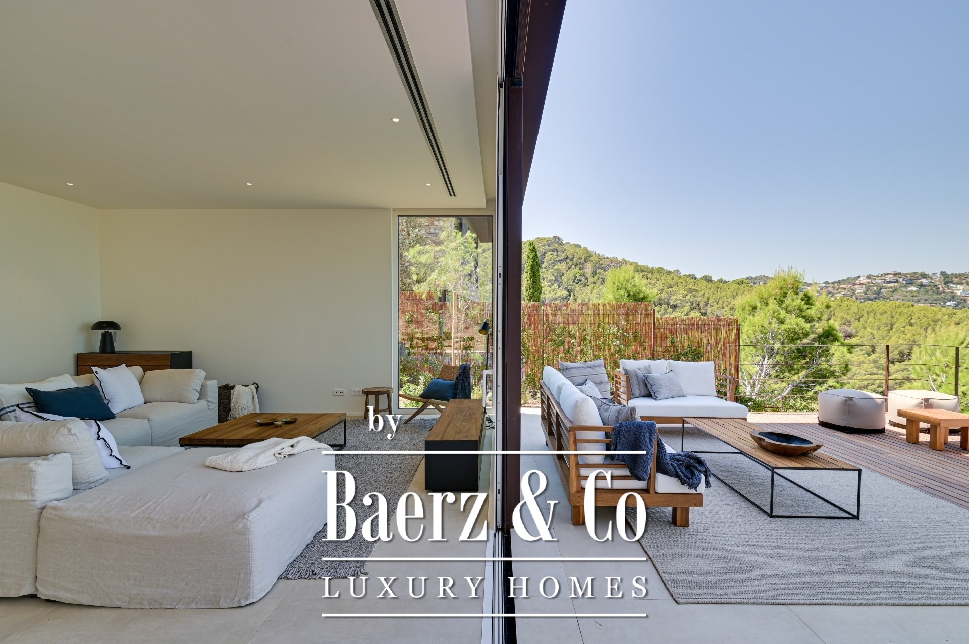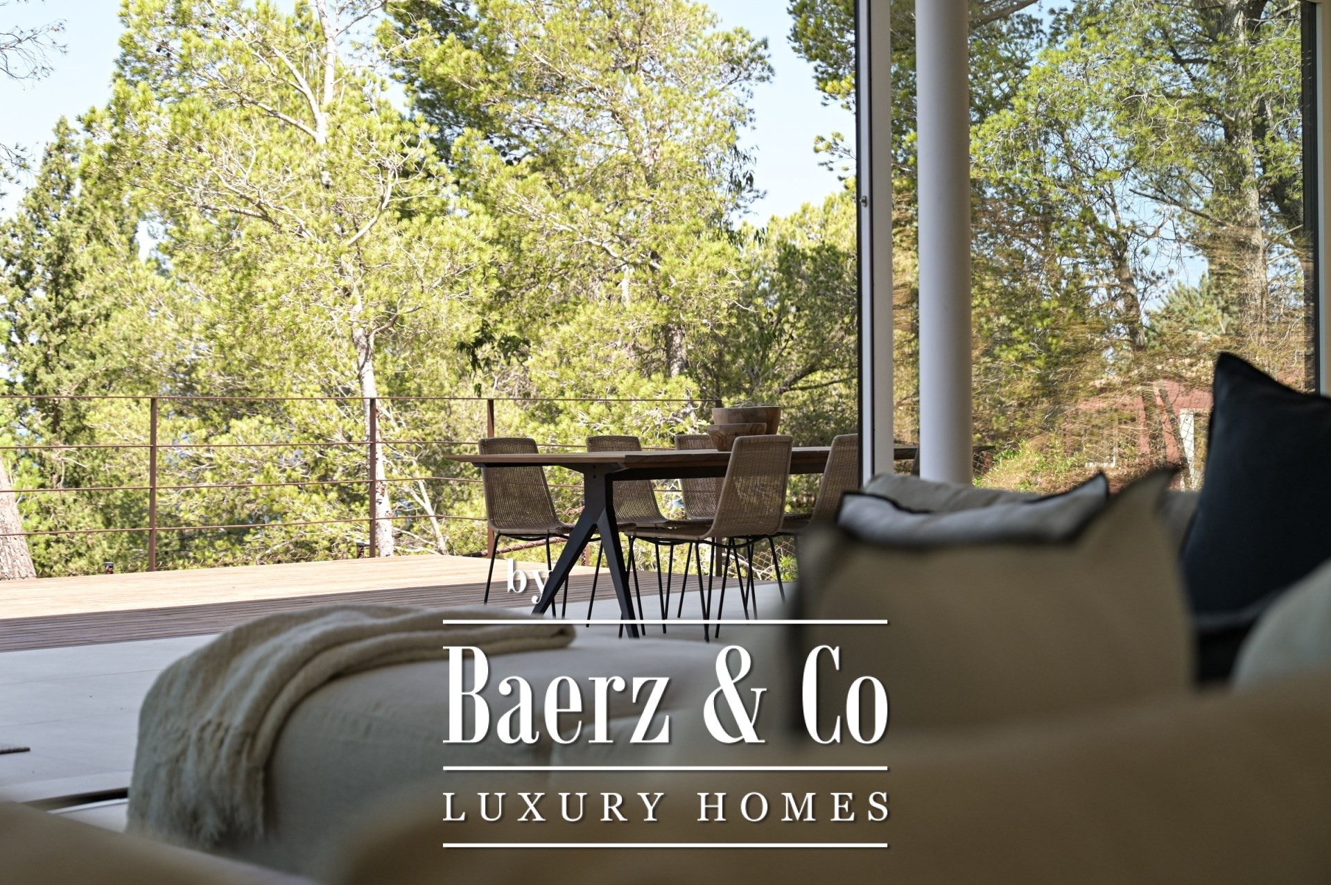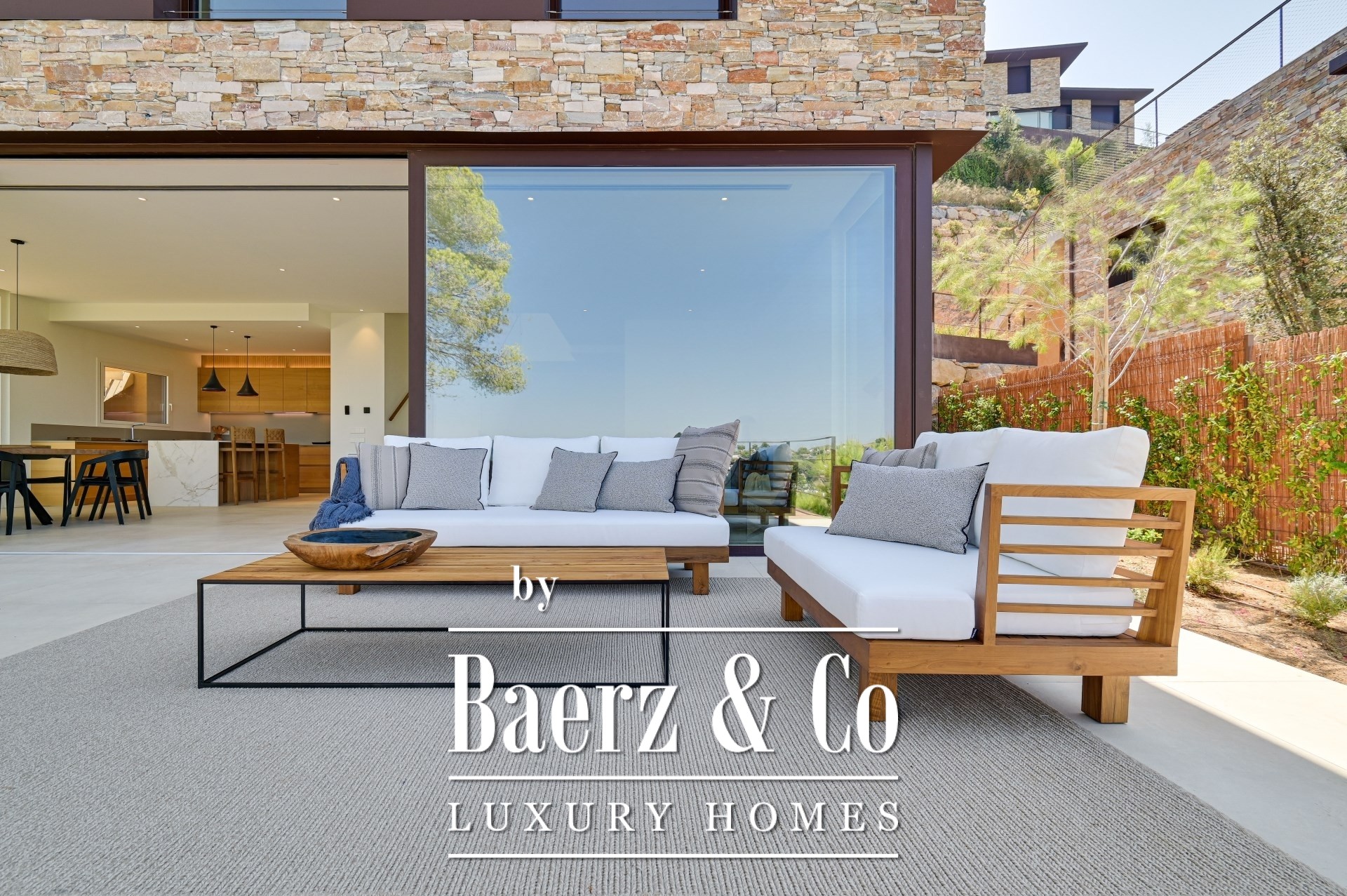 Площадь виллы составляет 347 м² на участке 925 м²; здесь четыре спальни и три ванные комнаты. Стеклянные стены интерьеров растворяют границы и наполняют дом средиземноморским светом. Элитные материалы и индивидуально выполненные отделки придают пространству спокойный, размеренный характер, а террасы, бассейн, навес для машины и ландшафтный сад обеспечивают возможность наслаждаться открытым пространством в полной приватности. Безопасность гарантирована системой сигнализации и закрытым входом; кондиционирование и отопление обеспечивают комфорт в любое время года.