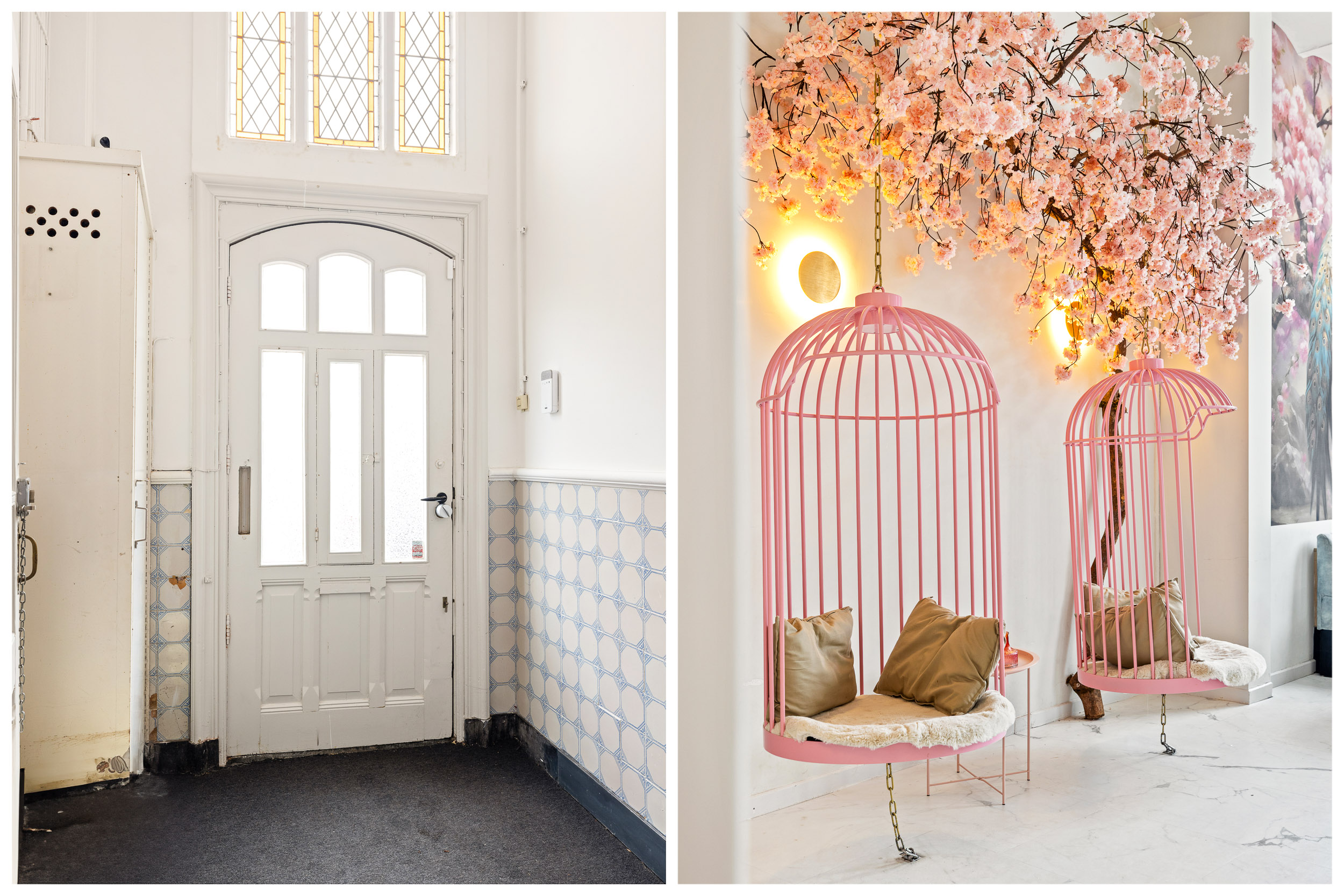 内部宽阔的阶梯山墙巧妙区分了商业和居住空间的独立入口,两翼又互通有无。住宅区保留有原始的桶拱天花与几何图案地砖,通向一间阳光充盈的花园房,法式落地门让内外空间与南向私家庭院自然连通。底层布局设有适合收藏葡萄酒的地窖,以及一处77平方米集多种功能于一体的区域,其中配备专业厨房、服务间及花园出入口,兼顾高雅生活与创业实践。
