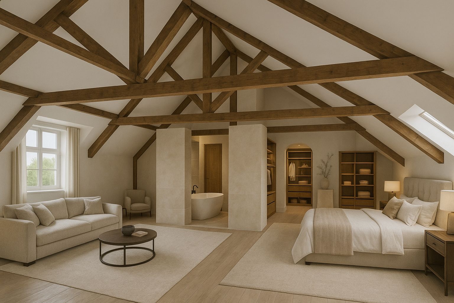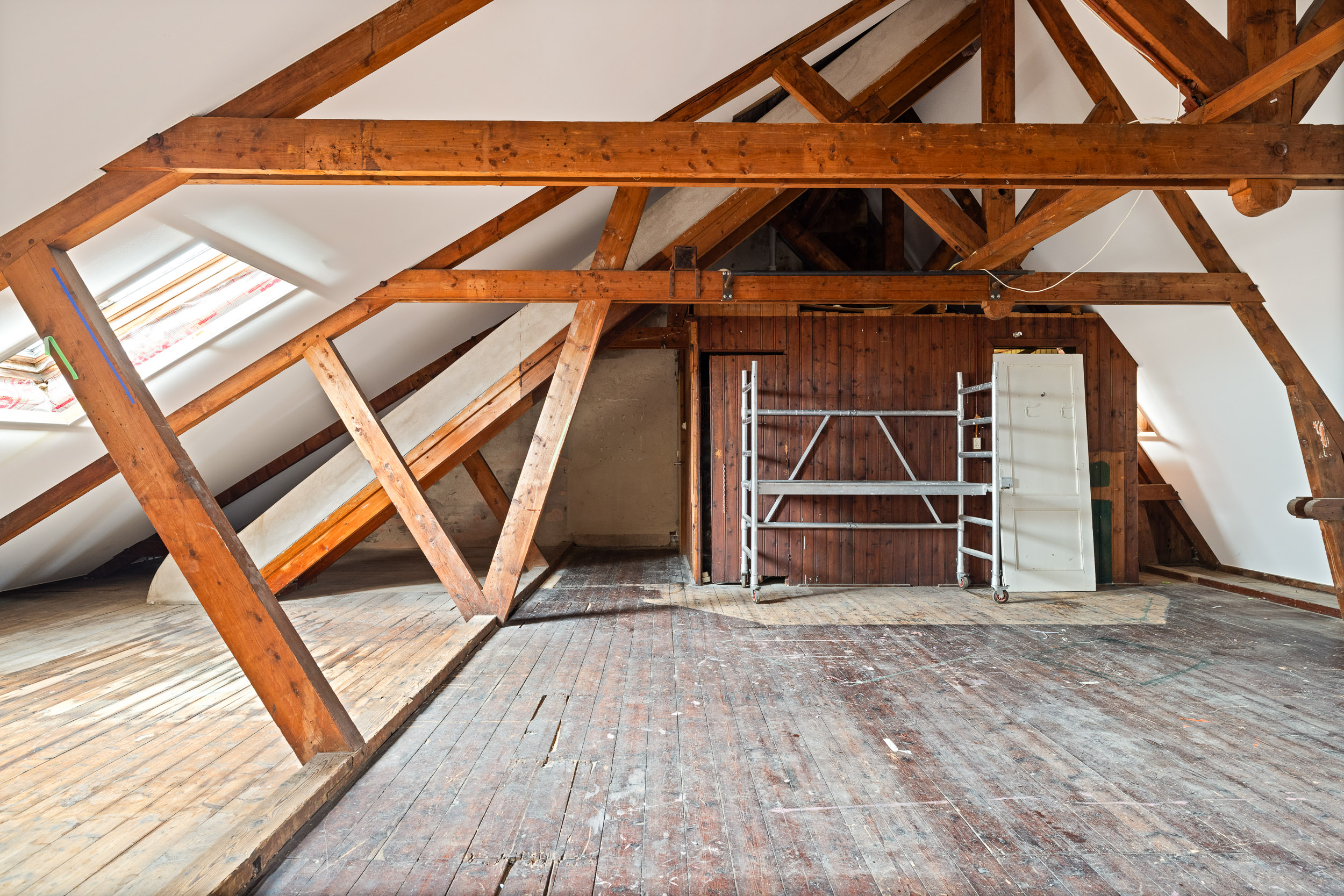 一座气势非凡的楼梯通向一楼,套房式房间配备带有历史黄铜配件的推拉门、拼花地板和保留完好的黑色大理石壁炉。起居区延伸至宽敞的45平方米屋顶露台;额外厨房与两间卧室贯穿历史传承和结构稳固。二楼为85平方米的开放式阁楼,粗壮木梁环绕,层高充裕,为日后创作工坊或独立公寓预留广阔空间。