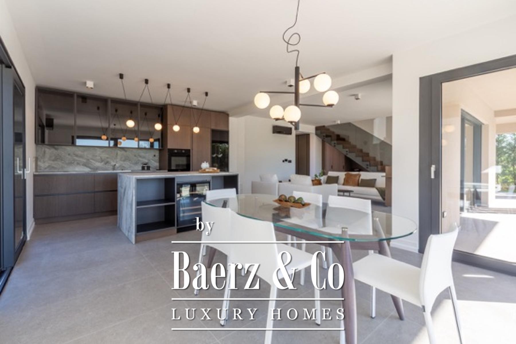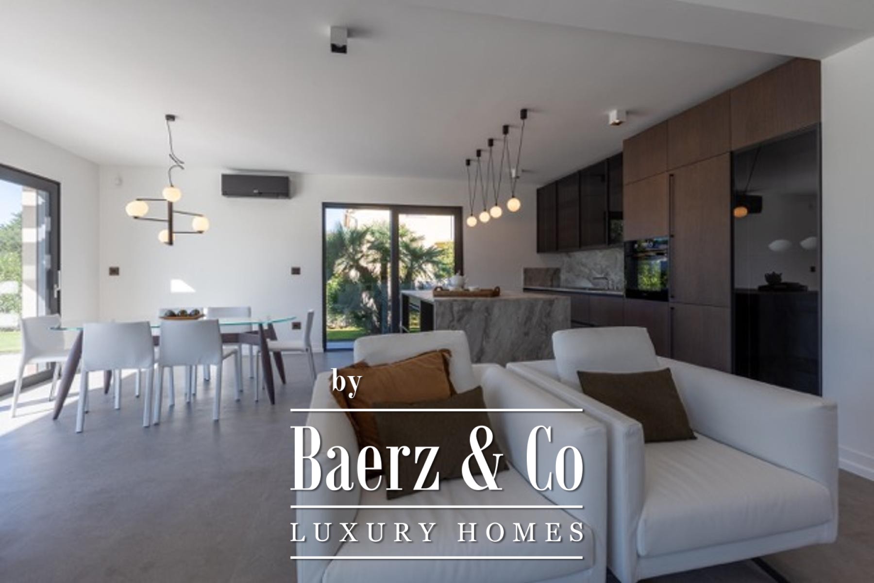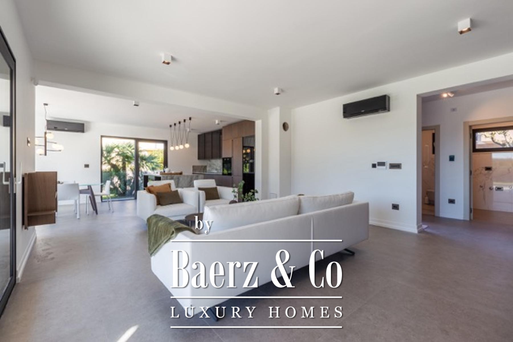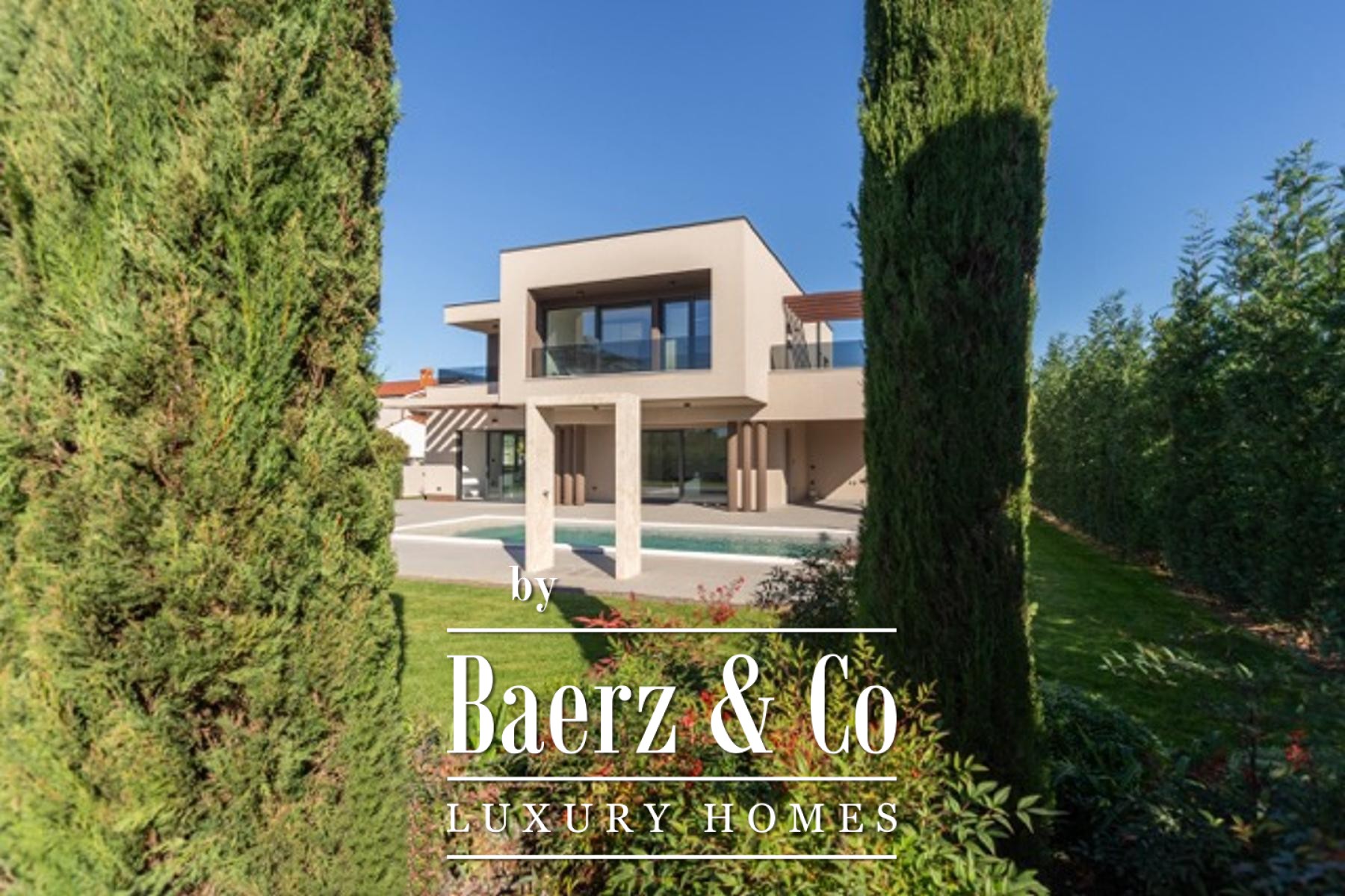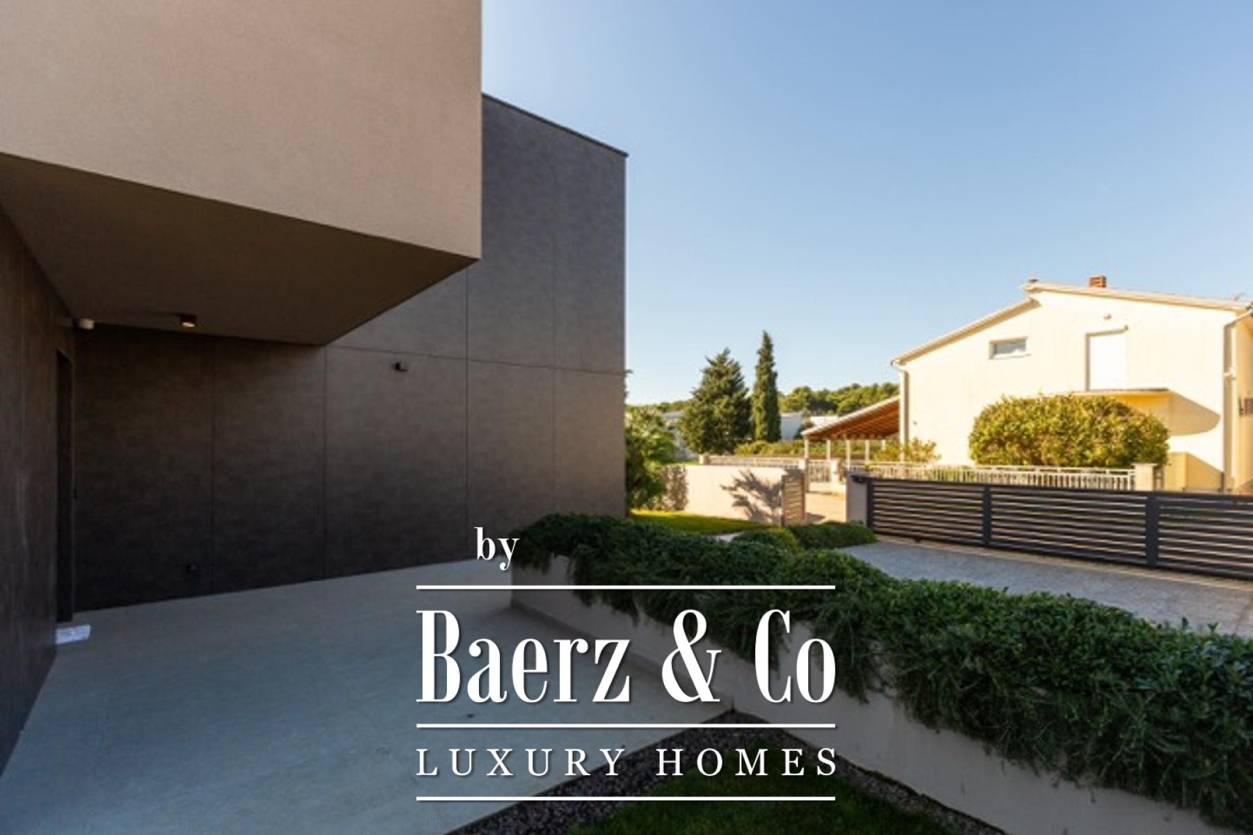 Nestled in the picturesque southern part of Istria, near stunning beaches and enchanting natural beauty, lies this villa, unique in its architecture, representing a fusion of modern lines perfectly blended with nature. It's a perfect combination of elegance and nature. Carefully designed, it spans 275.28 m2 of net living space, situated on a 772 m2 plot, guaranteeing complete privacy and tranquility for its residents.Upon entering the villa, high ceilings create an impression of spaciousness and luxury. The open-concept living room and kitchen, enhanced by large glass walls, allow for plenty of natural light and unobstructed views of the meticulously landscaped garden and heated pool measuring 9.5 m x 3.5 m, which blends harmoniously with the surrounding greenery. The courtyard area is enhanced with automatic irrigation.An elegant glass staircase leads to the upper floor, where there are three luxuriously decorated bedrooms, each with its own modern bathroom. Two rooms have access to terraces, ideal corners for relaxing in the afternoon. In addition to the impeccable interior, the villa offers additional amenities such as an outdoor summer kitchen, Fujitsu heat pumps, a designer shower, and a video surveillance system that ensures privacy and peace. Aluminum carpentry with triple-glazed windows, electric blinds, mosquito nets.The villa is equipped with underfloor heating via a heat pump system, while all rooms are air-conditioned. Solar panels are installed on the roof, ensuring the villa's energy self-sufficiency, a power plant with a capacity of 13.5 kilowatts. In the courtyard area, there is a technical room with a water filtration system.The villa is ideally located - it's just a few minutes' drive to the beautiful beaches in Štinjan and Fažana, the same distance to Pula, while the highway exit is only five minutes away. For more information about this unique villa and to arrange a viewing, feel free to contact us so that we can provide you with the best service in finding your home.